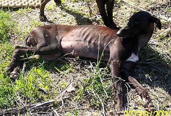 Esta galga esta abandonada en un pueblo de Cadiz (sólo diré el pueblo en privado a protectoras o gente de confianza por razones de seguridad para la perrita, hay muchos galgueros y cazadores). Es jovencita, está en celo (cuando la vi había dos perros alrededor de ella y uno intentaba montarla), está coja porque tiene una de las patas rota, como veis en las fotos está exhausta, desnutrida y deshidratada. Cuando reaccionó salió corriendo aterrorizada incluso coja (posiblemente le hayan pegado), salí tras ella durante más de una hora pero fue imposible.