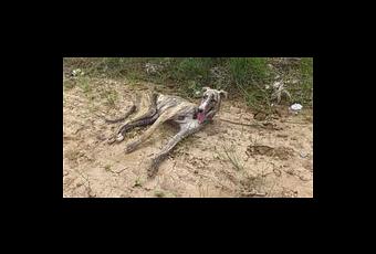 SE NECESITA AYUDA PARA ESTA POBRE CACHORRA DE GALGA SUERTE, SE A RECOGUIDO ATROPELLADA TIRADA EN LA CUNETA, EN LA RADIAGRAFIA SE APRECIA QUE TIENE UNA FRACTURA DE VERTEBRA, ES MUY URGENTE OPERARALA, SI NO SE QUEDA PARALÍTICA Y SOLO TIENE UNOS 7 O 8 MESES.