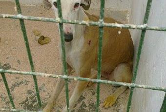 ESTA MAÑANA (28 d Noviembre) HAN DEJADO EN LA PERRERA ESTA GALGA CON HERIDA EN EL CUELLO, TRAS HABERLE QUITADO EL MICROCHIP.