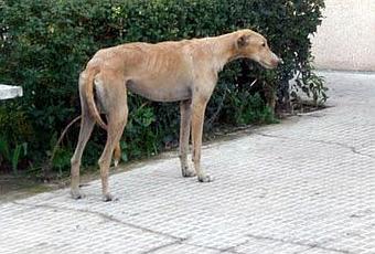 Este galgo ha aparecido cerca del Hospital, una carretera donde tiene mucho trafico, he intentado cogerlo, pero cuando se vio con la cuerda al cuello me saco los dientes, estuvimos siguiendolo hasta que la cuerda se le soltó, las patas por dentro la tiene con heridas y el cuerpo lleno de plomillos, mañana intentaremos volver a cogerlo, necesito una casa de acogida para este galguito, antes que lo atropellen.
