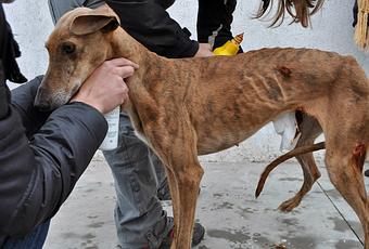 Observaciones: Vieja está fatal, llena de heridas infectadas, en las de la pata se ve el musculo. Además está muy delgada. Si no muere de una infección, lo hará de frío y si no será sacrificada en una semana.