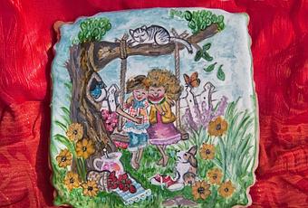 La galleta esté coloreada con pinturas en polvo diluidas en vodka y rotuladores de tinta comestible