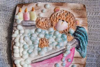 Como podéis ver, queda todo el dibujo en relieve, los tablones con la pintura en polvo quedan muy rústicos y la textura del osito queda de lo más aparente,