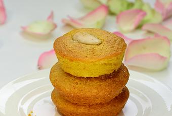 - Rellenar los moldes, colocar una almendra cruda y pelada encima y espolvorear una pizca de azúcar de caña. Hornear durante 20 minutos hasta que las galletas estén ligeramente doradas.