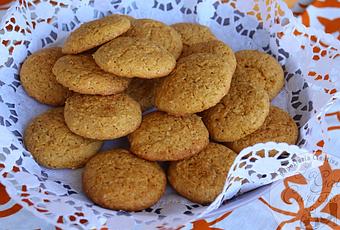 Añadimos la mezcla de harina lo justo para que se integre, con una cuchara pequeña de helado vamos haciendo bolas que colocamos en una bandeja de horno con papel sulfurizado, debemos dejar bastante separación porque al hornear se aplanan bastante (si las queréis un poco menos abizcochadas poner unos 50 gramos más de harina), hornear 20 minutos, dejar enfriar un poco en la bandeja y luego en la rejilla.