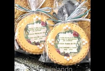 ...y como en todas las bodas, se repartieron detalles. Aquí os dejo las galletas que conmemoraron esta celebración. La receta de galletas es la que uso siempre (esta) y la decoración está hecha con fondant y papel de azúcar.