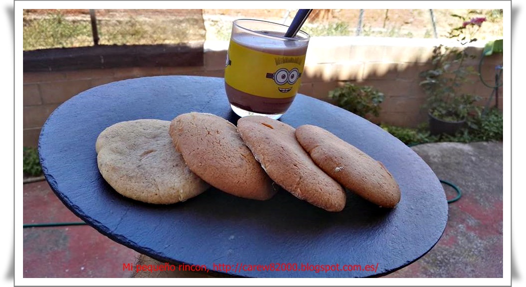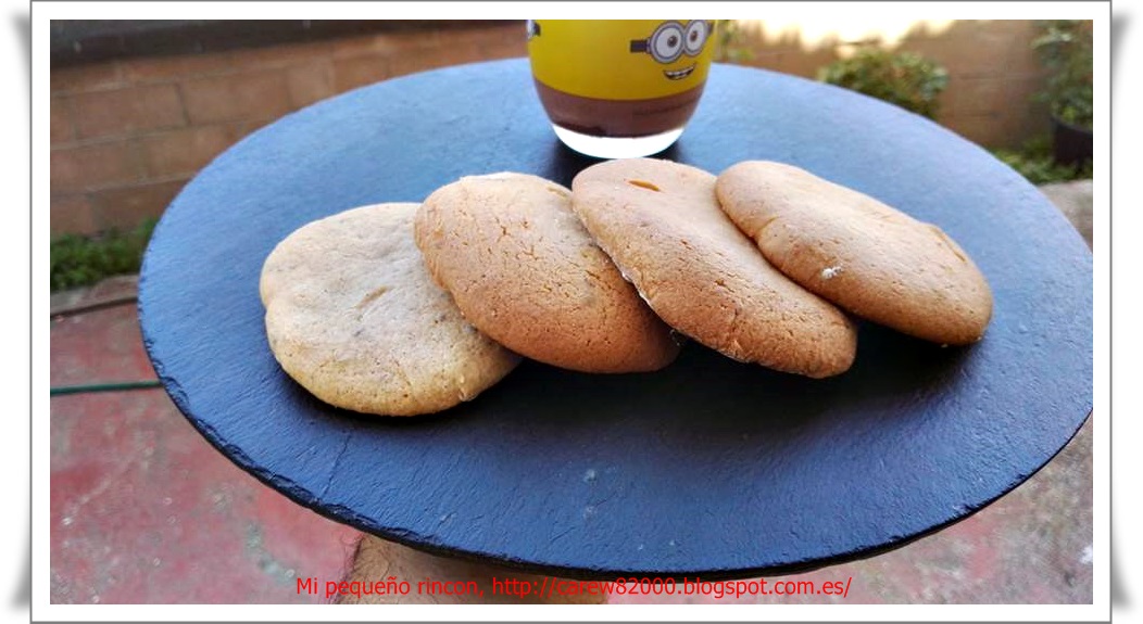 Ponemos un papel siliconoso sobre una bandeja de horno y vamos colocando bolas de masa aplanándolas un poco, hasta llenar la bandeja, metemos al horno y dejamos hasta que obtengan un tono doradito, las sacamos y dejamos enfriar.Repetimos esta operación hasta terminar la masa, más o menos os saldrán unas 20 galletas depende del tamaño que las queráis.Es una receta riquísima y que a todo el mundo en casa les encantara, animaros a comentar que os parece en el blog y si compartís en vuestras redes sociales os lo agradecería un montón, muchas gracias a todos….&version;