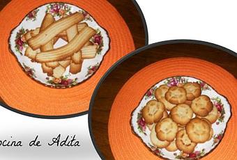 Hay churreras que tienen distintas boquilla, que nos valen para hacer las galletas, o pistolas con distintas boquillas, y si no estirando la masa y con corta pastas o boquillas en mangas pasteleras, hacemos las galletas.
