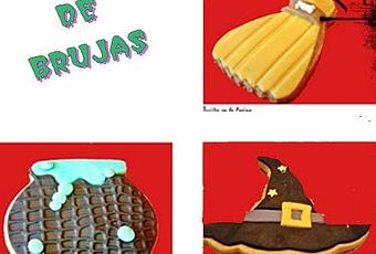 Por eso hoy como toque traigo estas galletas: el gorro de bruja, la escoba y el caldero donde hacer las pócimas... estoy super orgullosa de ellas, son de vainilla con fondant, de momento no me meto mas con la glasa hasta que no perfeccione esta técnica, pero volveré a probar.