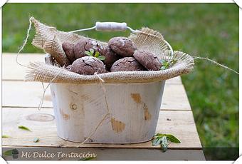 Derretiremos el chocolate al baño maría o al microondas y mezclaremos con la mantequilla. En un cuenco batiremos con las varillas los huevos con el azúcar y la vainilla hasta que blanqueen o aumenten su volumen el doble. Incorporaremos el chocolate fundido, ya tibio, y batiremos hasta que quede todo bien integrado. En otro cuenco mezclaremos la harina con la levadura y la sal, tamizaremos y añadiremos a la mezcla anterior con la ayuda de una espátula con suavidad. Envolveremos en papel film y dejaremos reposar en la nevera durante al menos 1 hora. Cuando la masa esté dura haremos pequeñas bolitas con ayuda de las manos. Rebozaremos las bolas en abundante azúcar glass. Las pondremos en la bandeja del horno, sobre la que habremos puesto un silpat o papel de horno, suficientemente separadas entre sí ya que crecen un poco. Hornear a 180º durante 10-15 minutos. Una vez horneadas dejaremos enfríar por completo sobre una rejilla.