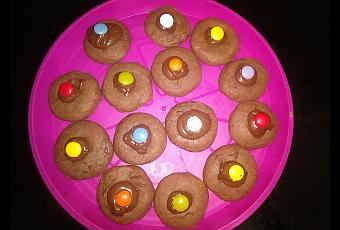 Sacamos de la nevera y hacemos bolitas todas del mismo tamaño, aplastamos y las hacemos un agujerito con el dedo en el centro de cada galleta. Metemos al horno, previamente precalentado, a 170º durante 8 o 10 minutos. Sacamos a una rejilla a enfriar y colocamos en el agujero que habíamos hecho una cucharadita de crema de cacao y para decorar un Lacasito y ya están listas para comer.