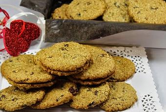 5- Copos de avena, pasas, canela y ralladura, 10 seg. Giro izda.,vel.3. Terminar de mezclar. Con las manos y meseta un poco enharinada, tomar porciones un poco más grandes del tamaño de una nuez, e ir formando bolitas.