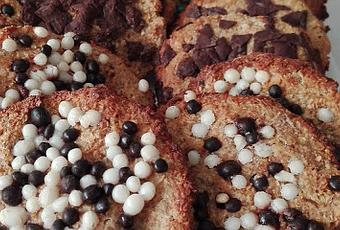 Con ayuda de un par de cucharillas, distribuir la masa en la bandeja formando galletas redondeadas. Si las hacemos más gruesas quedarán más tiernas por dentro, y viceversa. Si se quiere se puede añadir el chocolate por encima.