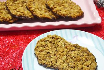 - Fundimos el chocolate en un cuenco, al baño María, removiendo de vez en cuando. Cuando las galletas estén frías, bañamos su base en el chocolate. Las volvemos a dejar enfriar sobre la rejilla, con el chocolate hacia arriba, hasta que solidifique.