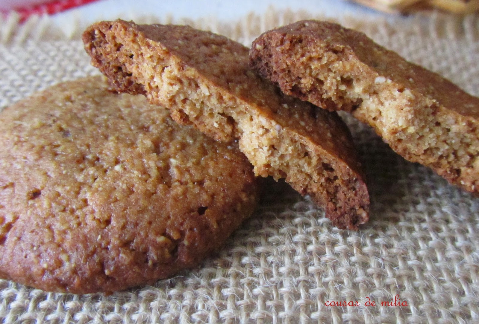 Últimamente tengo las galletas muy abandonadas, ni siquiera en Navidad puse recetas, pese a que hice una cuantas y algunas están en el borrador casi listas para publicar, pero con tan poca dedicación, publico lo primero que aparece, generalmente lo último que hago, que es el caso de estas galletas, que las hice la semana pasada y todavía hay una cajita. La receta es de una revista vegetariana de hace mucho tiempo y tienen una composición de lo más sano, además son crujientes, sabrosas y fáciles de hacer... ¡todo son ventajas!