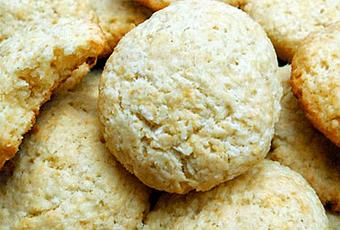 - Comenzamos hacer bolitas que serán las galletas del tamaño que desees, las vamos poniendo en la lata del horno previamente aceitada. Las presionamos para formar las galletas y horneamos a 130 grados Celsius por unos 20 minutos o hasta que estén levemente doradas en la parte superior.