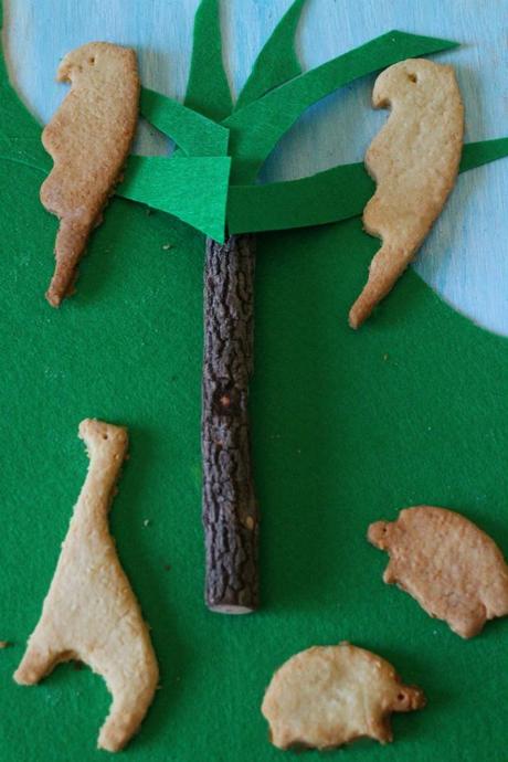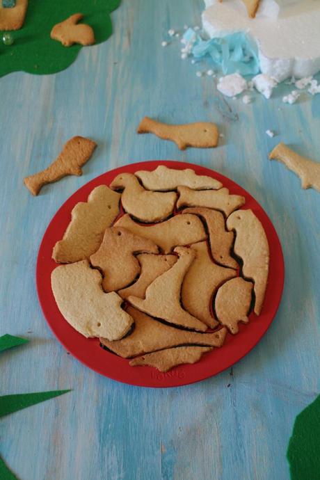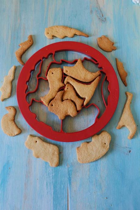 Con ayuda de un rodillo estiramos la masa hasta que ésta tenga un grosor aproximado de 5 mm. Colocamos el cortador "Cookie Puzzle Animals" de Lékué encima de la masa estirada y apretamos para que se corten las galletas.