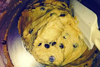 Añadimos las pepitas de chocolate, y removemos con la espátula.