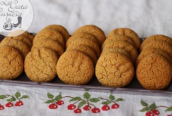 Precalentamos el horno a 180º C con calor por arriba y por abajo. Hacemos bolas del mismo tamaño (para galletas grandes 30 gramos) las vamos colocando separadas en la bandeja del horno con papel sulfurizado, aplastamos ligeramente, horneamos unos 20 minutos, hasta que se empiecen a poner de un bonito color dorado.