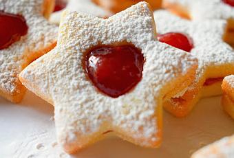 - Cuando están frías relleno con un poquito de mermelada ( la estrella sin agujerear) en el medio y tapo con la galleta agujereada