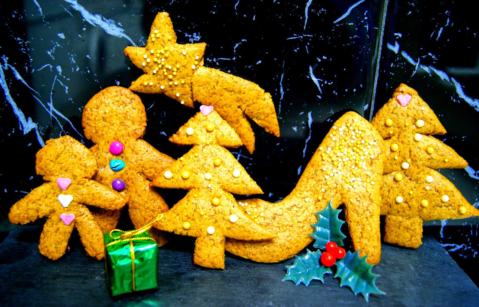 Colocamos la mantequilla a temperatura ambiente en un bol con el azúcar moreno, la miel, la canela, la nuez moscada y el gengibre y removemos. Después tamizamos la harina y se la agregamos junto con el bicarbonato. Amasamos todo hasta que se integre, formando una bola.