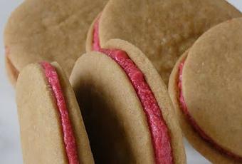 Pasamos a una manga con boquilla lisa y rellenamos las galletas.