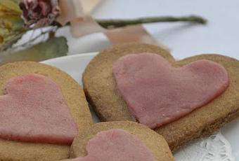 - Al final dejar enfriar sobre una rejilla y colocamos el corazón de mazapán en el centro haciendo un poco de presión para que se fije bien a la galleta.