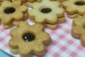 1º " Ponemos en un cazo la fruta, el azúcar y el zumo del limón. Lo dejamos cociendo a fuego medio durante 45 minutos y ya tenemos lista nuestra mermelada !!! ah! tenéis que triturarla con la batidora.2º " Como os habéis dado cuenta, las galletas las ha hecho unas con un agujero dentro (como una flor) y otras sin él, que sirve para que la mermelada no se nos caiga para abajo.