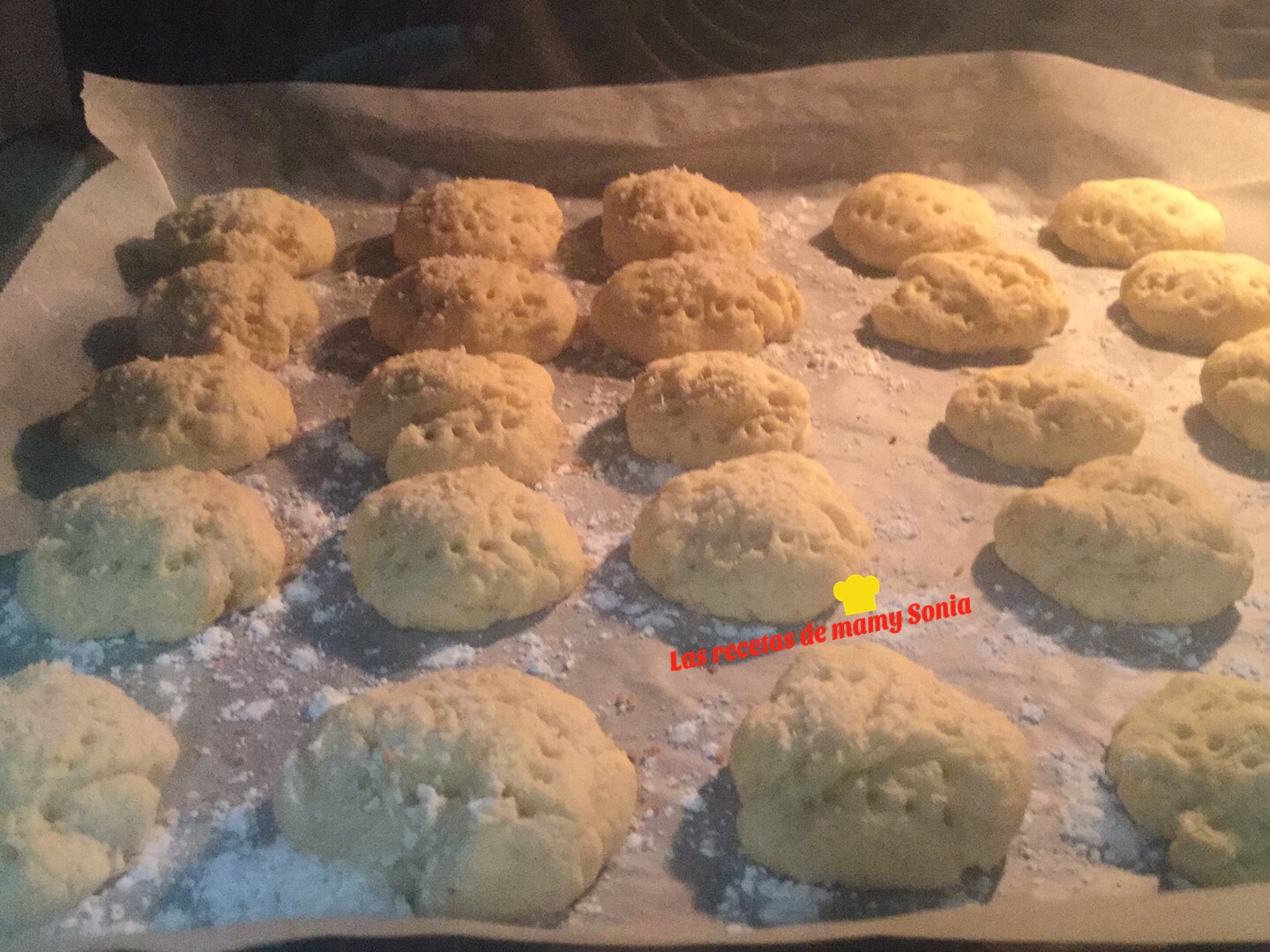 Cortamos galletas con el cortapartas y las ponemos sobre la bandeja de horno con un