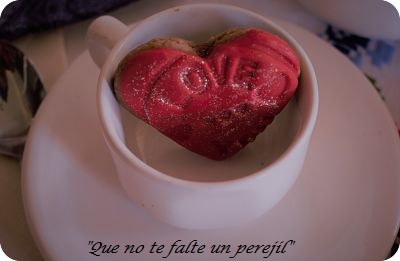 Ayer , mi marido, vino a la hora de desayunar a casa, algo que no puede hacer todos los días. Me trajo una rosa roja. A media mañana, le envié este mensaje en forma de galleta, jejejeje.