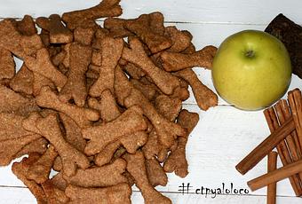 Si ha sido difícil encajar su comida, no te cuento lo difícil que es dar con la chuche que le vuelva loco. Hace unos días me dijo Samuel, mi hijo, que le hiciera yo las galletas. No sabía muy bien que ingredientes poner hasta que vi en Mascotas y Familias felices unas galletas de manzana y canela perfectas para nuestras mascotas. Entonces me puse con ellas y hemos acertado porque le encantan... es increíble lo que le gustan!!!