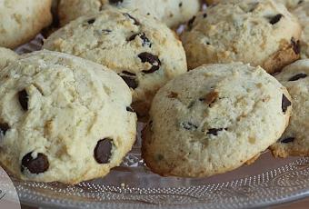 112 gramos de margarina (1/2 taza) 70 gramos de azucar 75 gramos de mazapán picado 60 ml de leche (1/4 de taza) 1 cucharadita de pasta de vainilla 170 gramos de harina 25 gramos de almidón de maíz (maicena) 1 cucharadita de levadura tipo royal 100 gramos de pepitas de chocolate 1 pizca de sal
