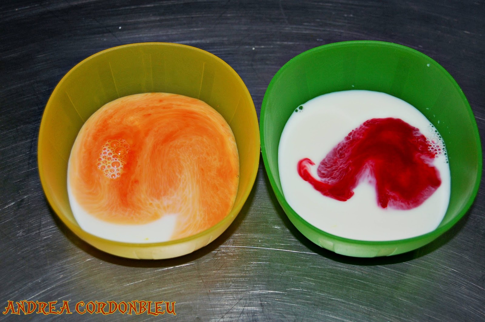 ELABORACIÓN:Se mezclan todos los ingredientes excepto la leche, los colorantes y el queso crema. Se terminan de unir con la mano.