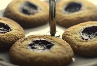 En una bandeja para horno pon las bolitas y haz una hendidura en cada galleta añadiendo un poco de mermelada en cada una.