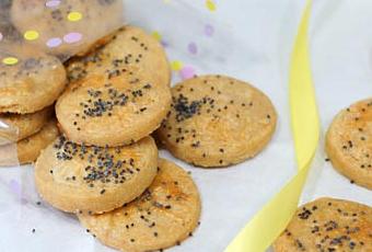 La masa la he hecho en Thermomix como Silvia: ponemos en el vaso la harina, el queso parmesano, la mantequilla, la sal y la levadura Royal. Programar 15 segundos a velocidad 6.Sacar la masa del vaso y ponerla encima de un papel de hornear. Poner otro papel de hornear encima de esta y con la ayuda de un rodillo estirarla entre los dos papeles. Dejar en la nevera durante 1 hora para que tome consistencia.Precalentar el horno a 180ºC. Retirar las galletas de la nevera y cortar con la forma que deseemos con un cortapastas, disponer encima de una bandeja de horno con papel sulfurizado. Pintar la superficie con la clara de huevo y espolvorear semillas de amapola.Introducirlas en el horno y dejarlas cocer unos 15 minutos, hasta que tengan un color dorado.Retirar y dejar enfriar antes de comer... que cuesta pero es necesario ;)