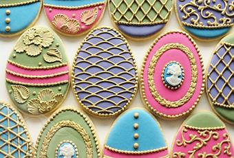 ¿Quién dijo que Pascua tenía que ser todo de imágenes dulces en tonos pastel? Aquí tenéis un ejemplo de unas galletas decoradas de huevos de Pascua, con un acabado increíblemente elegante.
