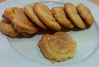 NÚMERO DE PERSONAS4TIEMPO DE PREPARACIÓN25 min+ 2h de refrigeración de la masaMATERIAL NECESARIOMicroondas, cuenco con tapa, horno, nevera, cuchara, báscula de cocina, rodillo, cuchillo, papel vegetal, bandeja de horno.INGREDIENTES250gr de harina8gr de levadura química en polvo30gr de azúcar + otro poco para espolvorear100gr de mantequilla200gr de crema de queso de untarPREPARACIÓN1. En el cuenco, ponemos la mantequilla y la derretimos un poco en el microondas para que resulte más fácil de amasar todo.2. Añadimos la crema de queso a la mantequilla y con una cuchara, vamos removiendo bien la mezcla hasta que quede homogénea.3. Añadimos los 30 gramos de azúcar, la levadura en polvo y la harina y lo amasamos bien todo hasta que quede una masa bien uniforme y bastante pegajosa.4. Guardaremos la masa en el cuenco tapado dentro del frigorífico durante unas dos horas.5. Mientras precalentamos el horno a 200ºC, sobre la bancada de la cocina, ponemos un poco de azúcar y extendemos bien la masa con las manos o con ayuda del rodillo enharinaado hasta formar un rectángulo.6. Enrollamos la masa sobre sí misma y la cortamos a rodajas de un centímetro o centímetro y medio.7. Colocamos el papel vegetal sobre la bandeja del horno y depositamos las galletas.8. Horneamos a 200ºC durante unos diez o doce minutos, hasta que estén doraditas.OBSERVACIONESPodemos añadir una cucharadita de sal a la masa para potenciar un poco más el sabor.Antes de introducir las galletas en el horno, podemos espolvorearlas con azúcar y canela.