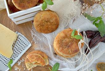Por supuesto, he hecho algunos cambios para adecuarla a mis gustos porque pensé que la receta era muy adaptable y la verdad es que ha quedado de miedo. La masa es muy jugosa y sabrosa, y el sabor a queso, aunque sutil, destaca sobre el resto. Las semillas de apio que le puse, le dan un toque crujiente y un sabor novedoso. Y con la albahaca y el ají panca seco, quedan sensacionales. Me han encantado.