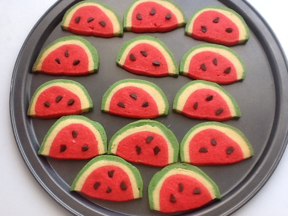 500 grs. de Harina1 sobre de gelatina sabor Sandía (Royal)Colorante en polvo ó gel color verde y color rojoChips de chocolate negro