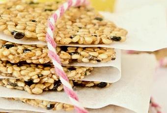 ¿Sabíais que la mujeres de la antigua Babilonia tomaban una mezcla de sésamo y miel para prolongar su juventud y belleza? Si es que ya está todo descubierto, jeje!!! Y, ¿sabíais que los soldados romanos lo tomaban para aumentar su fuerza y energía? ¡Ayyyy, qué sabían estos antiguos!!!! Y es que el sésamo tiene un montón de calorías y para absorber todos los nutrientes hace falta tostarlo y triturarlo. En esta receta, lo hemos tostado, pero lo trituraremos mejor en la boca, que sabe delicioso y ¡¡¡tan crujiente...!!!