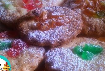 2.- Estiramos la masa con la ayuda de un rodillo, sobre papel de horno. Cortamos la masa con los moldes corta pasta. Troceamos la fruta y ponemos un poco sobre cada galleta.3.- Precalentamos el horno a 180ºC. Cocinamos las galletas entre 10 a 15 minutos, hasta que estén doradas por fuera. Las dejamos enfriar y esparcimos sobre ellas azúcar glas.