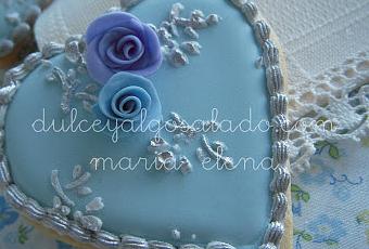 El azul celeste con plata y salteado con unas mini rosas en este caso elaboradas con fondant.