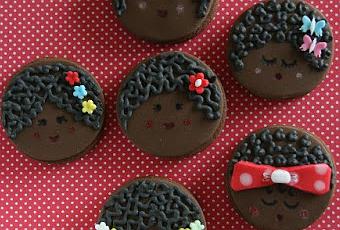 Hace un par de meses tenía que preparar unas galletas de chocolate para un regalo y conque me sobraron algunas, me vino la inspiración y decidí hacer caras de negritas. Fue algo improvisado y bastante rápido pero el resultado quedo muy cuco.