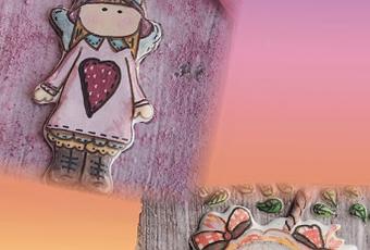 Para la galleta "Niña traviesa" hice prácticamente lo mismo, con la diferencia de que el fondo solamente lo pincelé para que diera un aspecto rústico