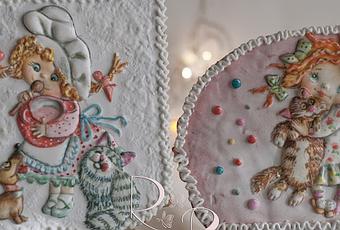 La carita de la niña con el gato me gustó mucho como me quedó, creo que son de esos dibujos que se merecen un cortador con la forma de esta muñeca y hacerla con una base para que se vea bien, al igual que la bailarina