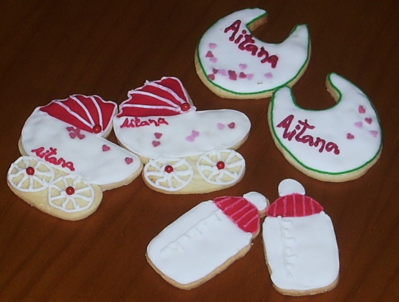 Para las mujeres he hecho estas galletas decoradas, en cada bolsita puse un carrito, un bibe y un babero