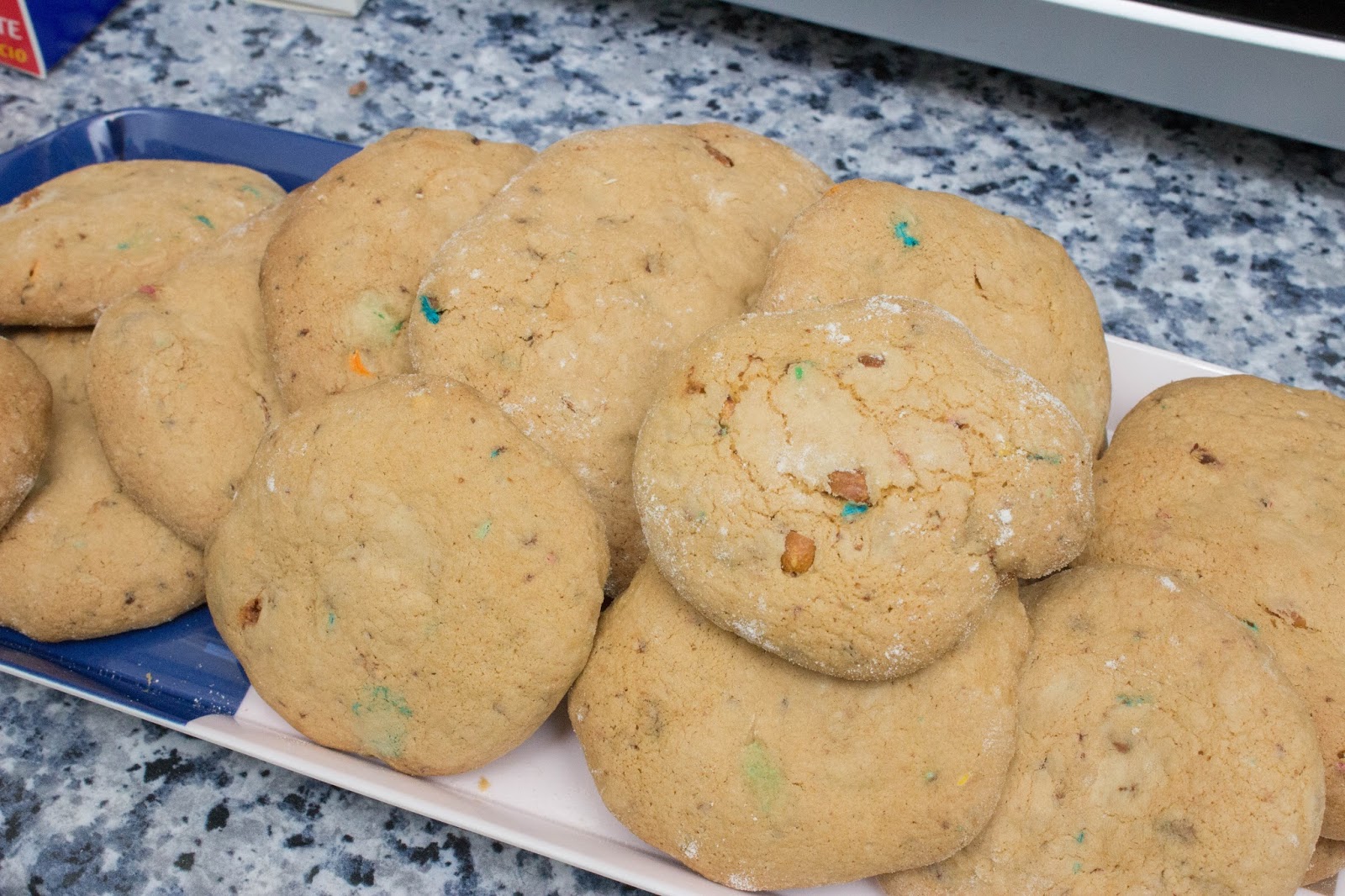 115 gr de mantequilla sin sal200 gr de azúcar blanca1 huevo grande1 cucharadita de extracto de vainilla o vainilla en pasta170 gr de harina1/2 cucharadita de bicarbonato1/4 cucharadita de sal1 bolsa de emanems