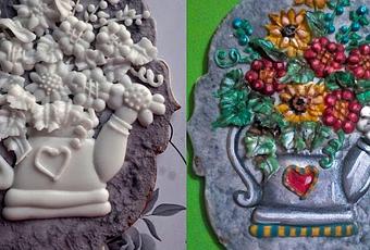 Yo fui haciendo las flores que estaban separadas, luego los puntitos de los cálices y los adornos, por último rellené casi todos los huecos con hojas que las hice con la boquilla de hoja para que quedara mejor