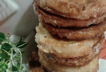 11.- Cortar en círculos de 1 cm de grosor aproximadamente. Colocarlos en la bandeja de horno.