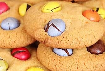 Ingredientes: 200 gr Harina, 5 gr Azúcar vainilla, 125 gr Mantequilla a temperatura ambiente, 75 gr Azúcar moreno, Una piza sal y una bolsita de M&M